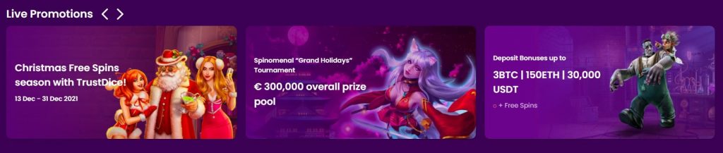 Como outros e-casinos, o trustdice também concede bônus de boas-vindas a seus novos signatários. O site o recompensará até 3 bitcoins, 30.000 PTDTS ou 150 ETH. Vinte e cinco rodadas grátis acompanham todos esses bônus.